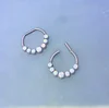 Synthetic Opal Septum and Daith ClickersSeptum and Daith Clickers. Implant-Grade Titanium and Synthetic Opal.These clickers were made using a combination of hand fabrication and multi-axis CNC machines to cut all individual parts to extremely tight tolerances, usually within 1/1000th of an inch. Then, the stones were set by hand, using a purpose built punch for speed and precision, requiring the utmost care with the extremely fragile opals. After stonesetting, everything is assembled with a laser welding machine, under microscope for maximum quality and attention to detail.These hinged, clicking rings are made to be worn in a pierced septum or daith, with extreme attention paid to the wearability and the smooth function of the hinge and latch.Body piercing is a part of human history dating back at least 5000 years, to the time of last ice age, if not longer. Scientists discovered a well preserved man with pierced ears, large stretched lobes and tattoos, preserved in ice in the Austrian Alps. This style of adornment holds a place in human culture as an art form and as a mode of personal ritual. I make jewelry like this to help people adorn themselves as a part of their ceremony, rites of passage, and personal ritual, alchemizing the pain of the piercing into a beautiful adornment. These clicker rings have a 5/16s” internal diameter, with a 6mm wearable surface. Made in 2024 at Intrinsic Body Jewelry.